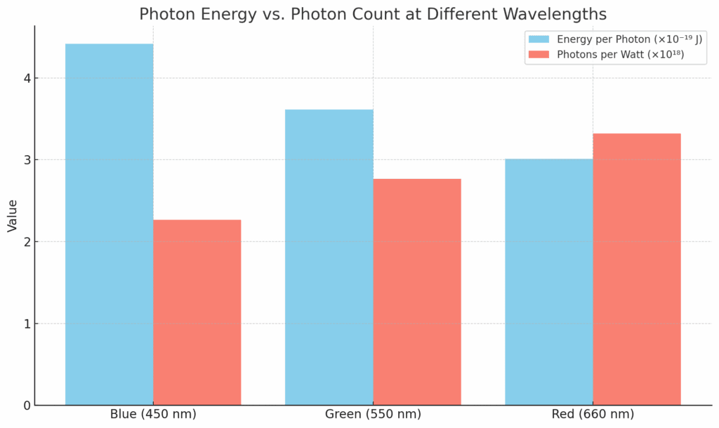 Red light gives you more photons per watt—nearly 50% more than blue. That’s why red-rich LEDs are so efficient at driving photosynthesis.