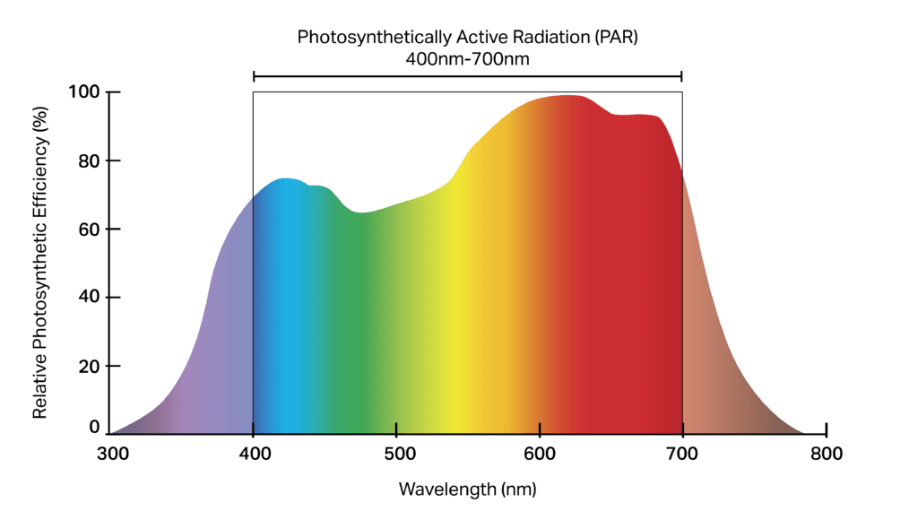 We can break visible light into specific wavelengths, with each range having different impacts on crop growth: